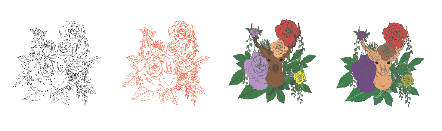 일러스트레이터를 이용하여 열심히 사슴을 그리고 색칠하였습니다. 먼저 펜 툴을 이용하여 스케치를 하였고, Object에서 Live Paint 설정 후 채색을 하였습니다. 다음은 저의 진행 과정들입니다. 마지막으로는 mockup 작업까지 해주었습니다.