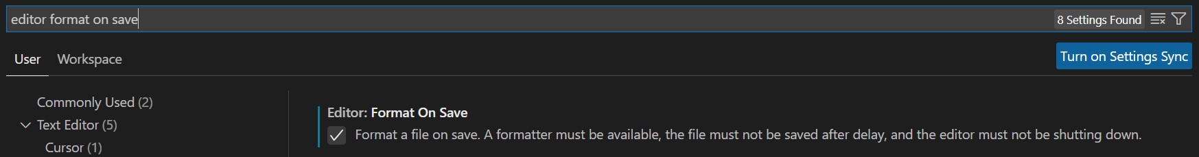 editor.formatOnSave가 true인지 확인하고, false라면 true로 바꿔줍니다.