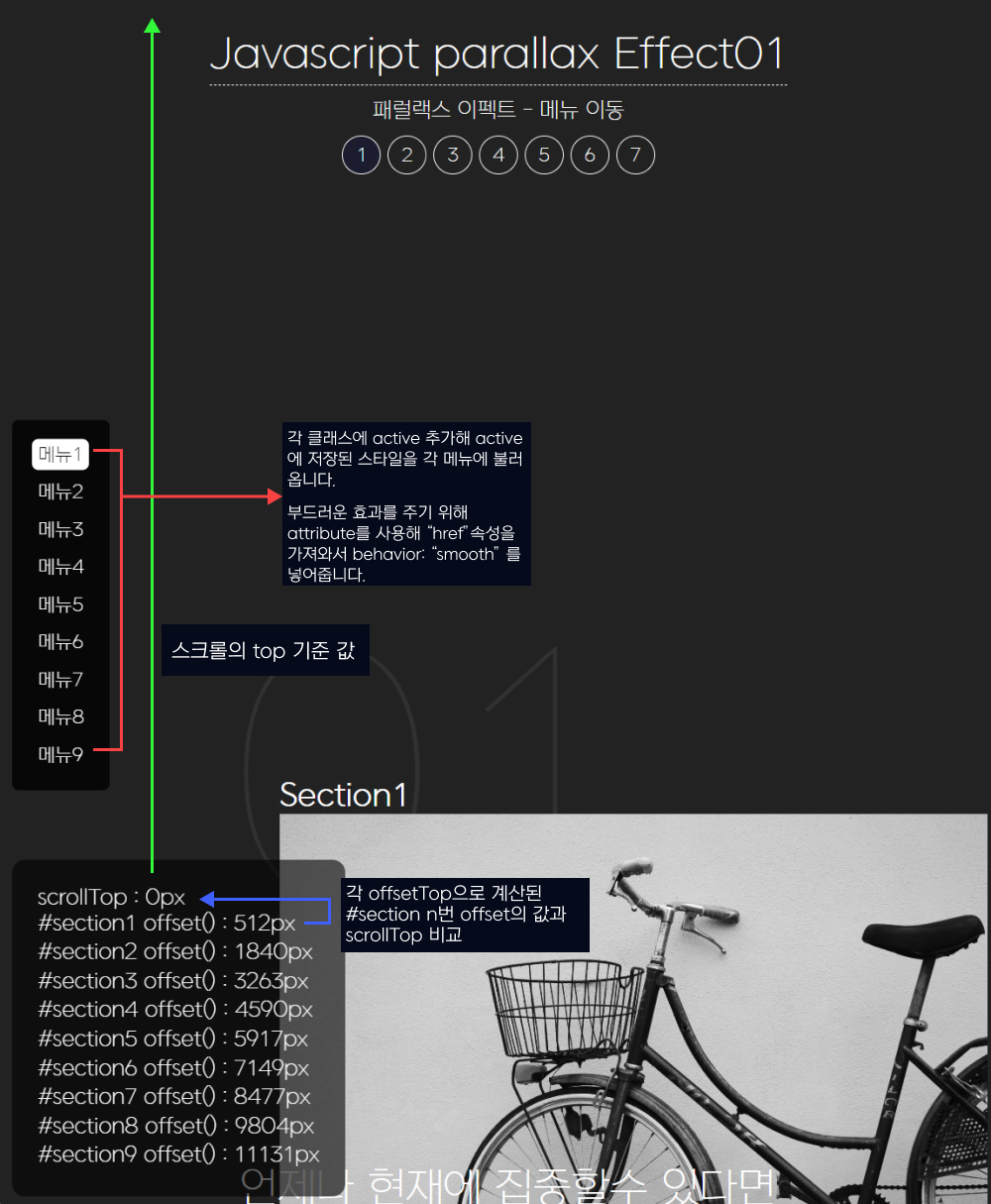 if (scrollTop >= element.offsetTop - 2) { //만약 scrollTop(브라우저의 최상단에서 스크롤 한 값)이 .content__item 클래스 요소의 상단과의 거리 값의 이상이라면